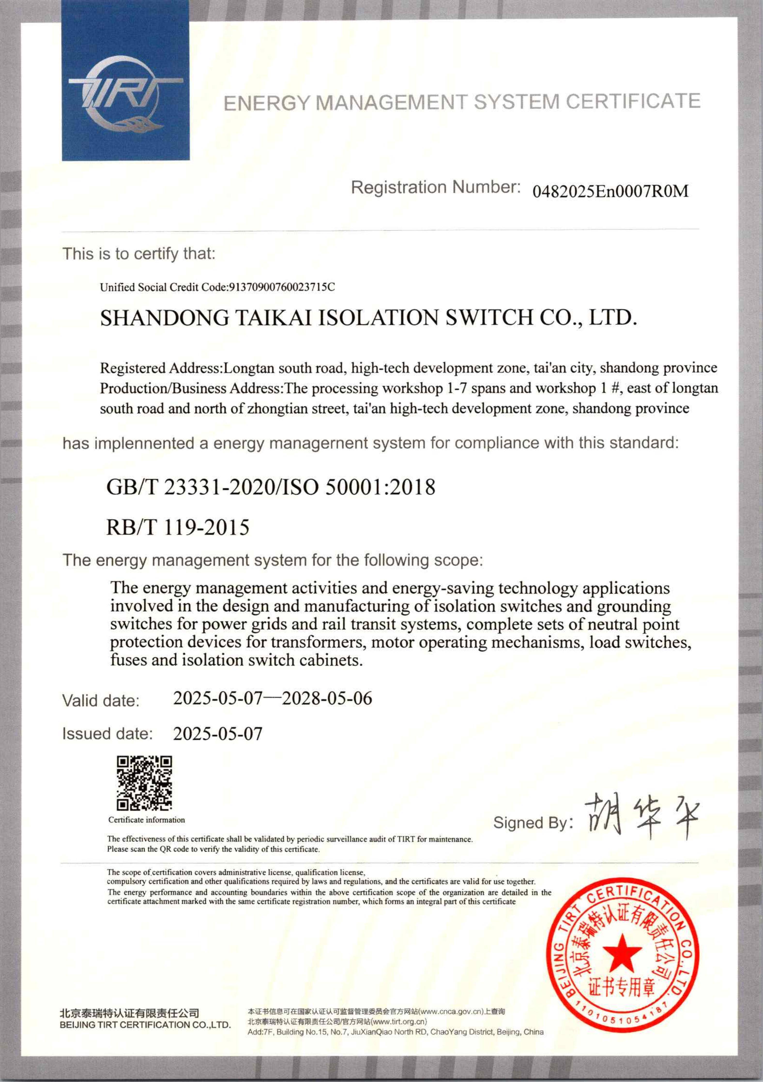 SHANDONG TAIKAI DISCONNECTORS CO., LTD. ist eine hundertprozentige Tochtergesellschaft der Taikai Group Co., Ltd., einem der 500 größten chinesischen Produktionsunternehmen. Mit einem Stammkapital von 200 Millionen RMB ist das Unternehmen ein Hightech-Unternehmen, das Forschung und Entwicklung, Produktion, Vertrieb und technischen Service integriert.