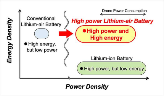 Um dieses Problem zu lösen, entwickelte das Forschungsteam eine poröse Elektrode aus Kohlenstoffnanoröhren, kombiniert mit einem niedrigviskosen Elektrolyten auf Amidbasis, der die Sauerstoffzugänglichkeit deutlich verbessert und die Stromdichte deutlich erhöht. Dieses innovative Design verbessert nicht nur die Leistungsfähigkeit von Lithium-Luft-Batterien, sondern ermöglicht es ihnen auch, schwebende kleine Drohnen stabil mit Strom zu versorgen und so die Flugzeit deutlich zu verlängern.