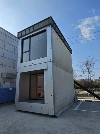 Das modulare Gebäude nutzt eine U-förmige Betonfertigteilstruktur mit vom Architectural Research Institute entwickelten Wärmespeicherwänden. Das Innenfüllmaterial wird zu 100 % werkseitig hergestellt, wodurch eine fertige Box entsteht, die sowohl Wärme- als auch Schalldämmung bietet. Außenmaterialien und Fenster werden werkseitig hergestellt und lassen sich so einfach vor Ort montieren, was die Bauzeit weiter verkürzt.
