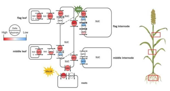 Weitere Forschungen ergaben, dass das Gen SWEET13 für den Transport von Zucker in die Körner verantwortlich ist. Ein Forschungsteam unter der Leitung der ägyptischen Wissenschaftlerin Dr. Eman Abslimah untersuchte die durch Salzstress bedingte Zuckeranreicherung und verschiedene Speichermechanismen von Zucker in Pflanzen. Sie entdeckten, dass das Gen SWEET13 wie ein Schalter fungiert und den direkten Transport der bei der Photosynthese produzierten Saccharose in die Körner der Pflanze steuert. Die Forscher fanden ein besonders aktives SWEET13-Gen in der alten syrischen Sorghum-Hirse-Sorte Razinieh. Dieser Genschalter kann durch Züchtung in andere Sorten eingeführt werden. Die Polymerase-Kettenreaktion (PCR) hilft, die richtige Mutation in den Züchtungsergebnissen bereits im Keimlingsstadium zu identifizieren.