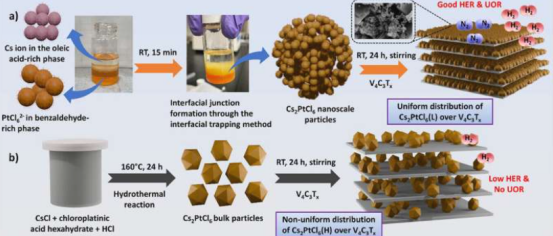Weitere Informationen: Punnoli Muhsin et al., „Interfacial Synthesis of Cs₂PtCl₆ Perovskite and Its Strong Coupling with V₄C₃Tₓ MXene in Efficient Hydrogen Evolution and Urea Oxidation“, *Angewandte Chemie International Edition* (2025). Zeitschrifteninformationen: Angewandte Chemie International Edition