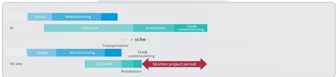 CYG hat die Entwicklung modularer Umspanntechnik in China vorangetrieben. Basierend auf modularem Design, nimmt es vorgefertigten Montagestrukturstil an und führt die Ausrüstungsproduktion, Installation und Inbetriebnahme in der Fabrik um. Standardisierte Lieferung und Feldinstallation können die Bauziele verwirklichen, den Projektfortschritt zu beschleunigen, die Projektqualität zu verbessern, Land zu sparen und Kosten zu senken.