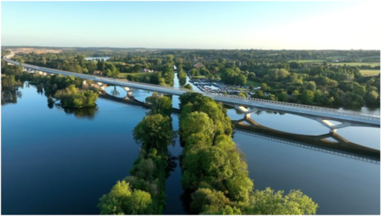 Das 3,4 Kilometer lange Viadukt ist eines von über 50 großen Viadukten, die im Rahmen des HS2-Projekts gebaut werden. Es liegt in der Nähe von Denham in Buckinghamshire und ermöglicht der neuen Hochgeschwindigkeitsstrecke, das abwechslungsreiche Gelände im Nordwesten Londons zu durchqueren, darunter Straßen, Seen, den Fluss Colne und den Grand-Union-Kanal. Die Züge werden voraussichtlich mit einer Geschwindigkeit von 320 Kilometern pro Stunde über die sanft geschwungene, aus 1.000 Brückenabschnitten bestehende Konstruktion fahren.