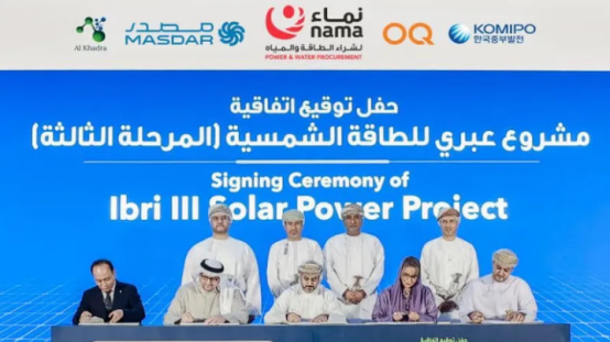 Zum Konsortium gehören Masdar, Al Khadra Partners, Korea Midland Power Co., Ltd. und OQ Alternative Energy. Das geplante Ibri-Phase-III-Projekt umfasst ein 500-Megawatt-Photovoltaikkraftwerk und ein 100-Megawattstunden-Batteriespeichersystem. Der Projektumfang umfasst Planung, Finanzierung, Bau, Betrieb und Wartung des Kraftwerks und des Energiespeichersystems.