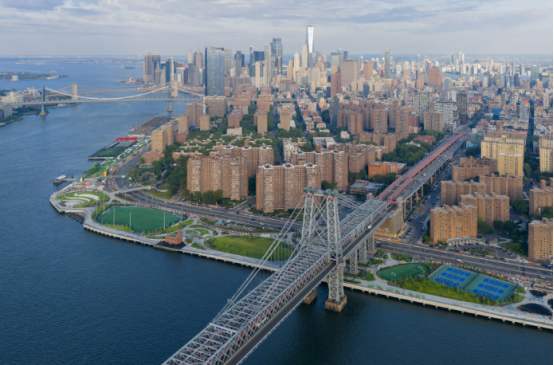 Die erste Phase des Küstenschutzprojekts an der Ostseite Manhattans wurde für die Öffentlichkeit freigegeben.Dieser 3,6 Kilometer lange Park am East River nutzt integrierte Anlagen, um den Hochwasserschutz des Gebiets zu verbessern. Das Projekt stattet die Lower East Side mit einer Infrastruktur aus, die sie vor extremen Wetterereignissen schützt. Das Schutzsystem besteht aus erhöhten Grünflächen, Hochwasserschutzmauern und beweglichen Toren.