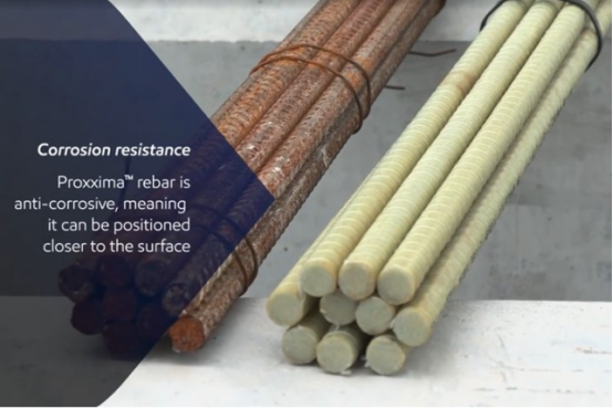 In dieser Kooperation arbeitete ExxonMobil mit MST Rebar aus Ontario, Kanada, zusammen, um die neue Version der Proxxima GFRP-Bewehrung zu entwickeln. Die Installation erfolgte durch ein lokales Bauteam und den Partner Mason Construction (Beaumont, Texas). MST Rebar lieferte innerhalb von zwei Wochen 12.198 Meter Bewehrung, und das Bauteam schloss die Installation zügig ab. „Wir sind mit dem Produkt äußerst zufrieden und planen nicht, jemals wieder Stahl zu verwenden“, sagte Brian Cavareta, Leiter der Abteilung Verpackung und Transport Nord im Kunststoffwerk Montpellier.